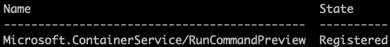 az feature register --namespace "Microsoft.ContainerService" --name "RunCommandPreview"