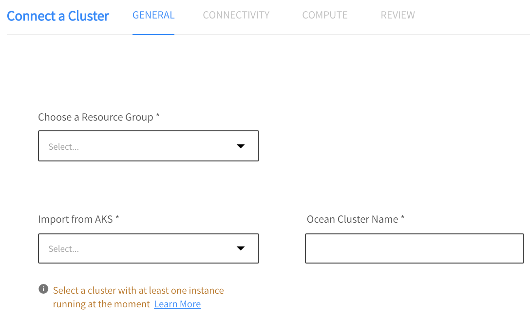 2. For the Ocean Cluster Name, the system will copy the name of the AKS cluster to this field. Although you can modify it, we recommend that you leave it the same as the original AKS cluster name. This will make it easier to identify related entities in each system.